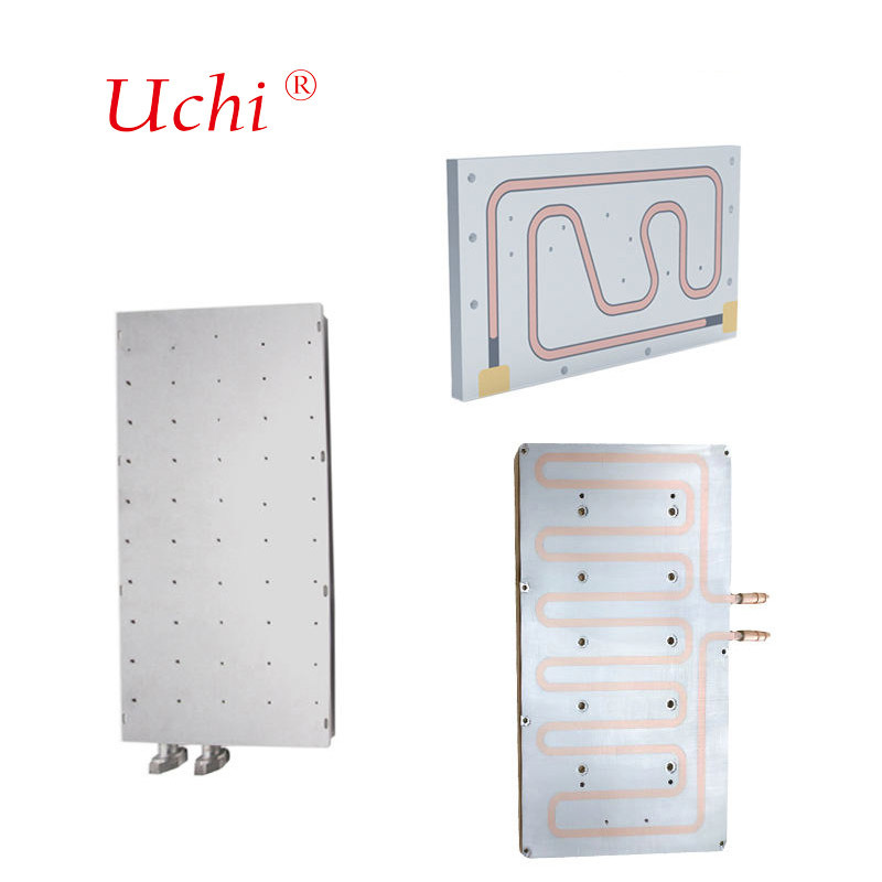 Kernkomponenten: Unterplatte (Aluminium/Kupfer, direkt an der Wärmequelle befestigt), innerer Strömungskanal (Serpentin/Parallel/Mikrokanal), Abdeckplatte (versiegelter Strömungskanal),und Flüssigkeitsein- und AuslassverbindungenDie üblichen Kühlmittel sind deionisiertes Wasser, eine Wasser-Glycol-Mischung.